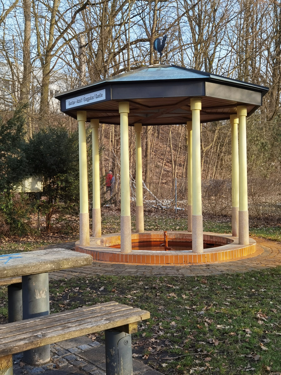 Die Gaggerlasquelle“ wird im Volksmund so bezeichnet, weil der Schwefelgehalt des aus Tiefenbohrung kommenden Wassers nach fauligen Eiern riecht. Ihr offizieller Name ist Gustav-Adolf-Quelle. Sie wurde 1901 bis 1903 gebohrt, um Kohle- und Kalisalz zu gewinnen. Heute ist sie Naturdenkmal und beliebtes Ausflugsziel.
