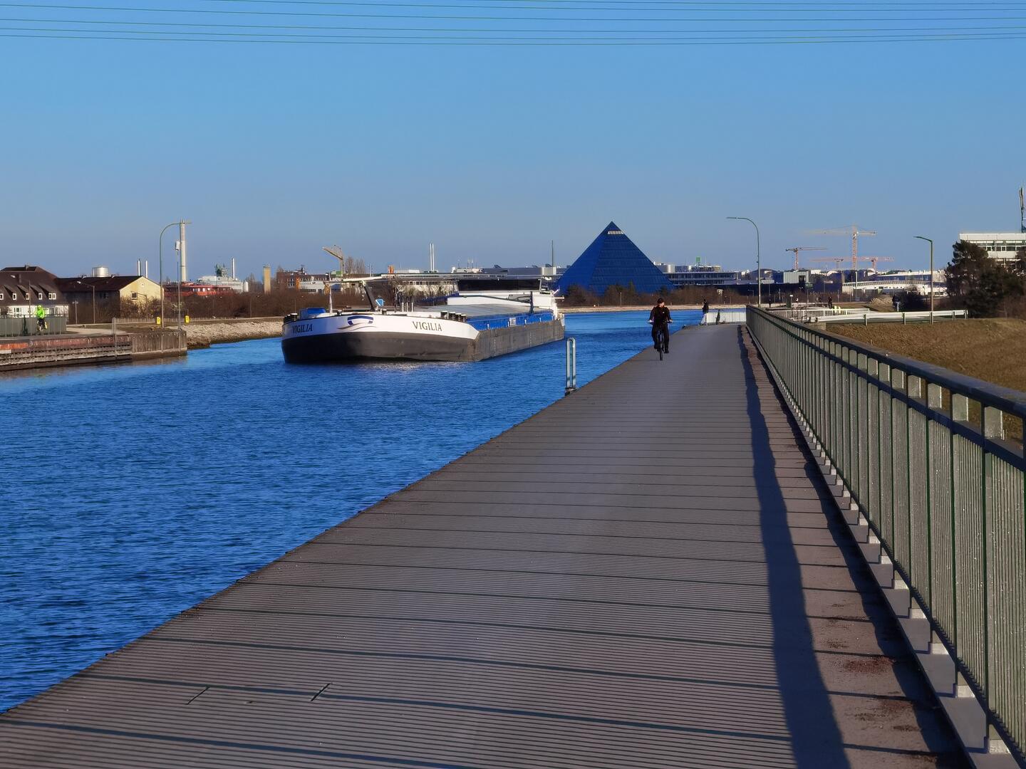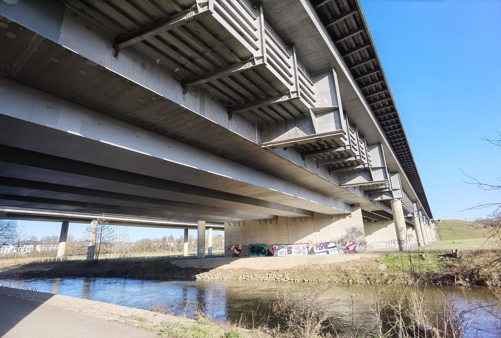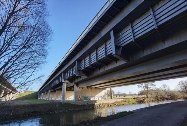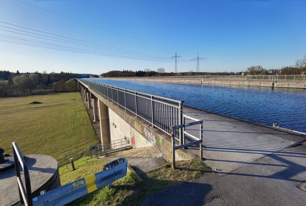 Es ist ein besonderes Empfinden, wenn man am Ufer der Rednitz steht und 15 Meter über einen die Wasserstraße RMD-Kanal verläuft! 218 Meter lang ist die Kanalbrücke, die das Rednitztal überquert. Beide, Kanal und Rednitz (dann als Regnitz) treffen sich wieder und enden in Bamberg.