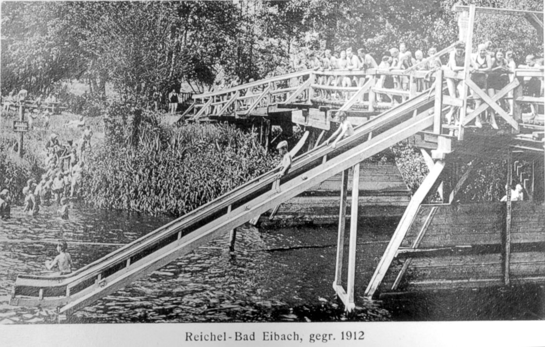 auch Rednitzbad genannt. Seinen Namen Reichelbad hatte es von seinem Besitzer Georg Reichel. Es wurde bereits 1912 eröffnet und ist damit wohl das älteste Bad in Eibach. Auch hier verfügte man über Umkleidekabinen, verschiedene Spiel- und Sportgeräte und eine Wasserrutsche, was besonders junges Publikum anlockte. Auch in „Gastwirtschaftlichen Betrieben“ konnte man Hunger und Durst stillen.