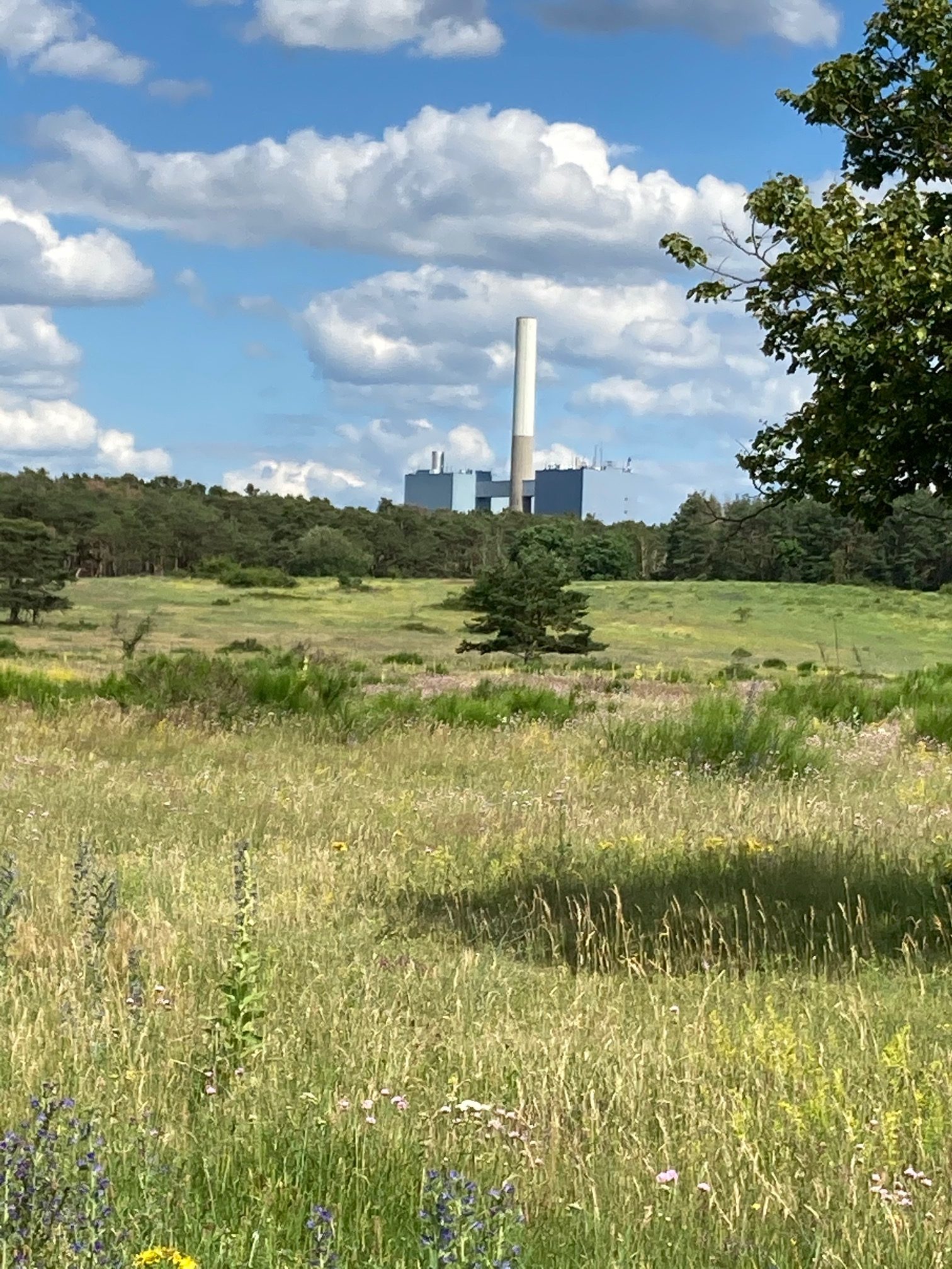 Dieser Steg wurde nach langem Hin und Her von der Stadt Nürnberg neu gebaut und ist sozusagen das Tor zum Hainberg. Der Hainberg hat eine lange, auch militärische Geschichte, bevor er zum Naturschutzgebiet (FFH) erklärt wurde. Vor dem ersten Weltkrieg war er militärisches Übungsgelände, nach dem 2. Weltkrieg Übungsgelände für die US-Army. Vom Gelände des Hainberg hat man eine beeindruckende Sicht zum Großkraftwerk Franken in Gebersdorf.