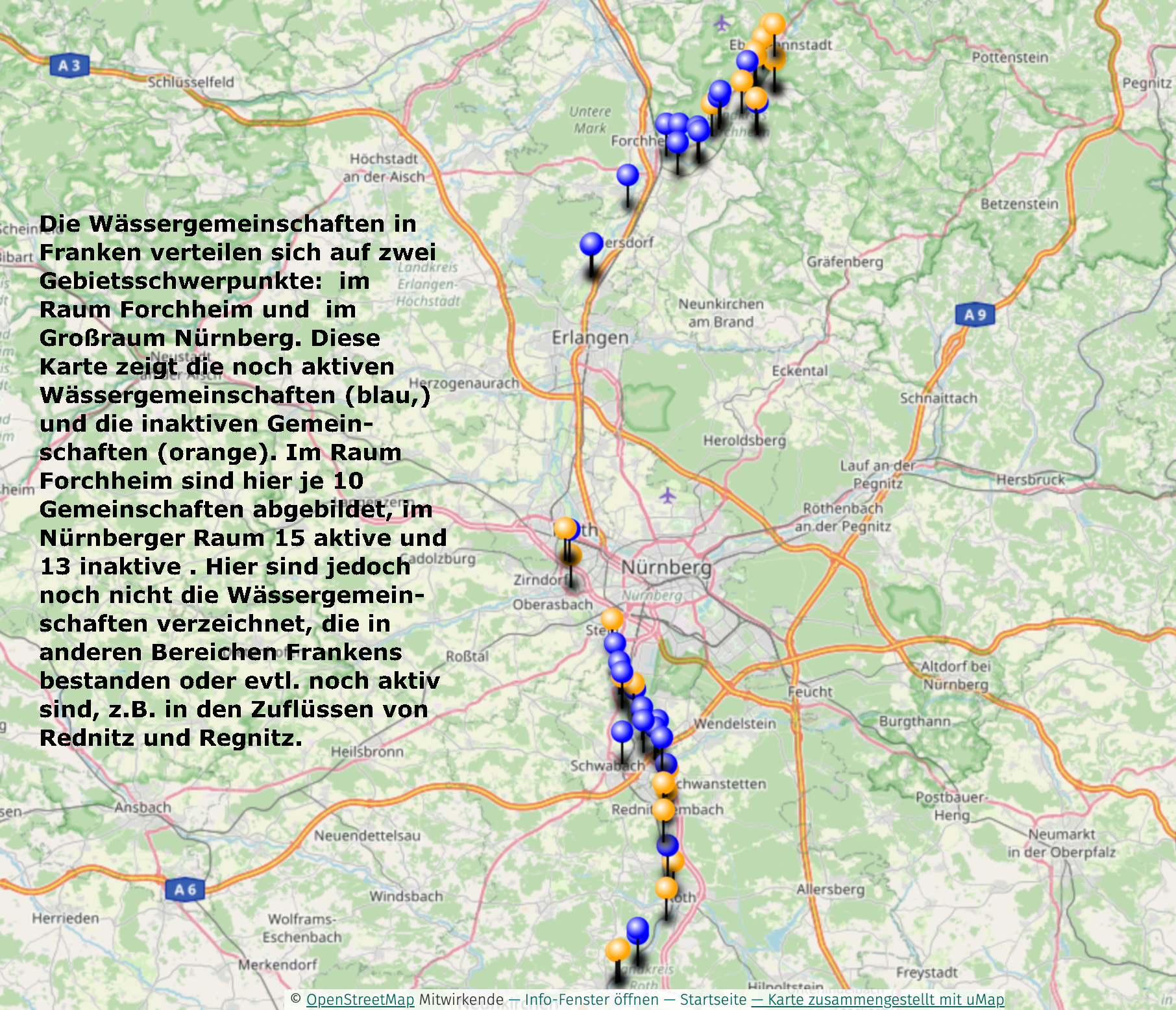 Der Wässerbrief von 1547 regelte die Rechte und Pflichten aller Beteiligten. Die Wässergemeinschaft hat einen „Wässerer“, der sich um die Zuführung des Rednitzwassers und seine gerechte Verteilung kümmert. Dieser Prozess findet jedes Jahr von April bis September statt.