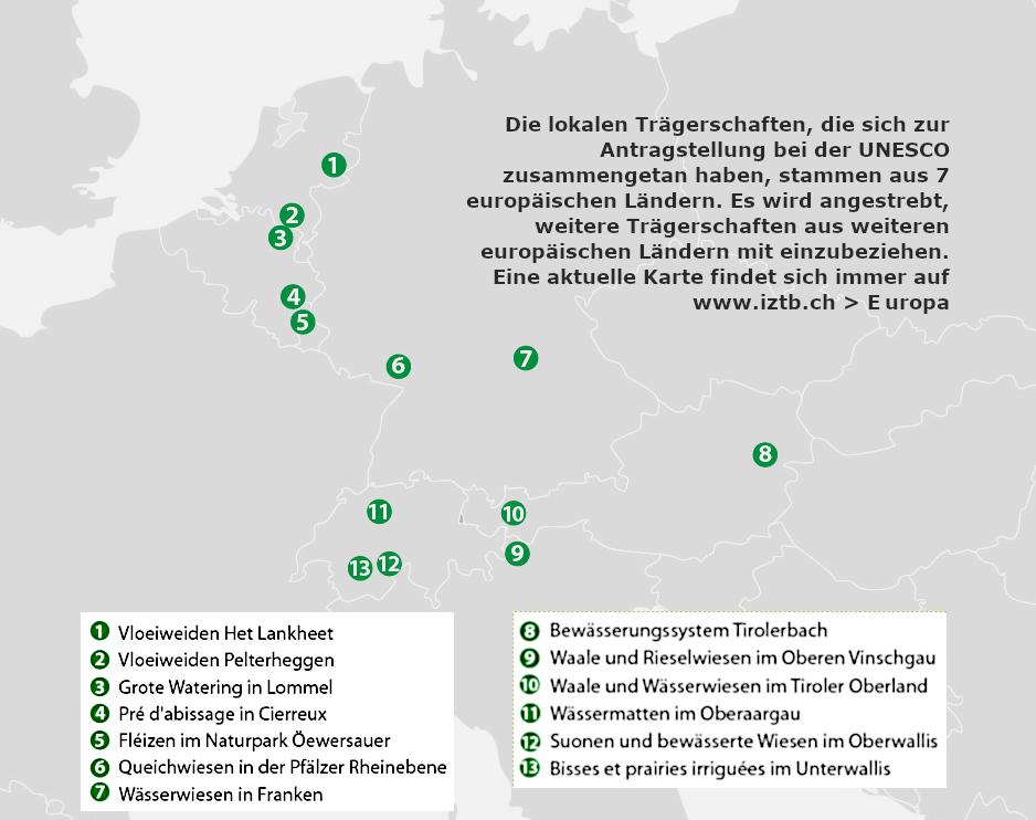 Der Prozess der internationalen Bewerbung war geprägt von einem regen Austausch zwischen den lokalen Trägerschaften in Europa. Dies stärkte das Bewusstsein für diesen gemeinsamen kulturellen Schatz, den es zu bewahren gilt. Die traditionelle Bewässerung hatte nicht nur in der Vergangenheit eine existenzielle Bedeutung, sie kann heute zur Lösung von gegenwärtigen und zukünftigen Herausforderungen beitragen, wie zum Beispiel zum Hochwasserschutz, zum Klimaschutz, zum Landschaftswasserhaushalt und zum Schutz der Biodiversität.